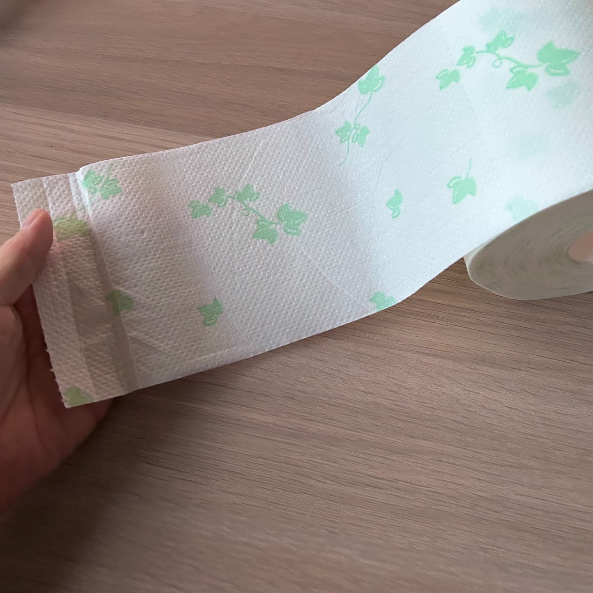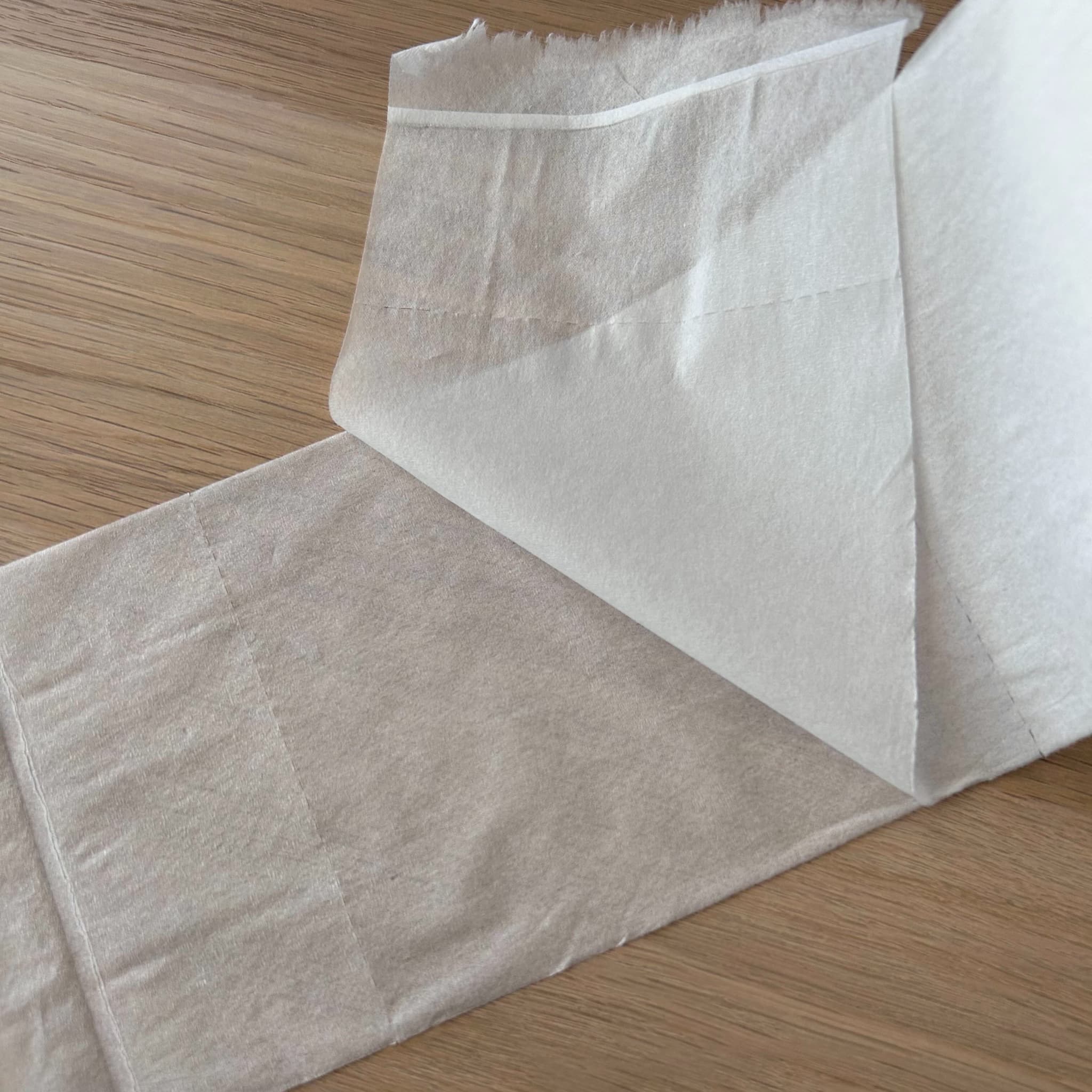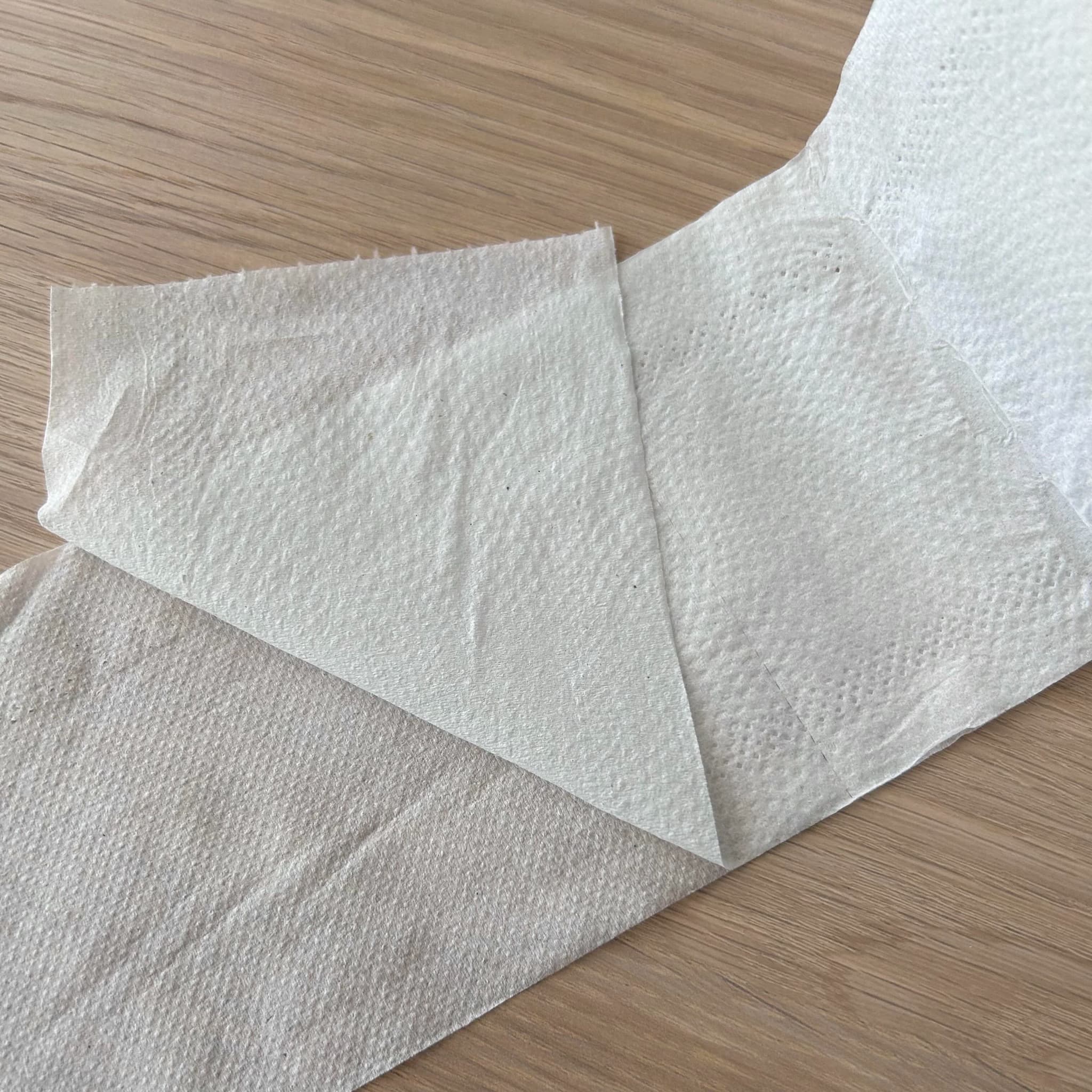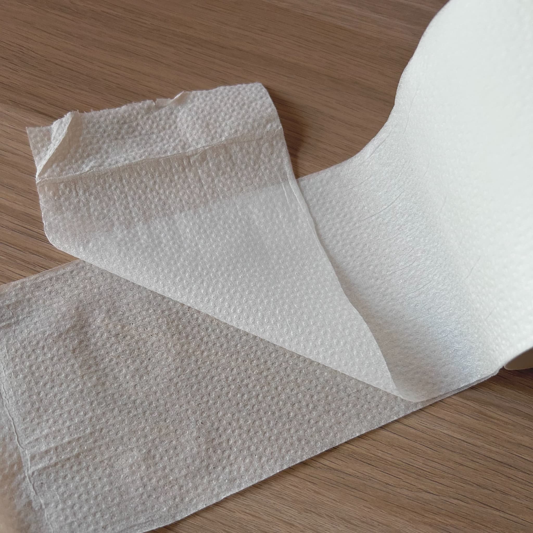 ダブルタイプで丈夫さもあり、安心感のある使い心地です。エンボス加工はありませんが、肌触りはとてもふんわりしています。