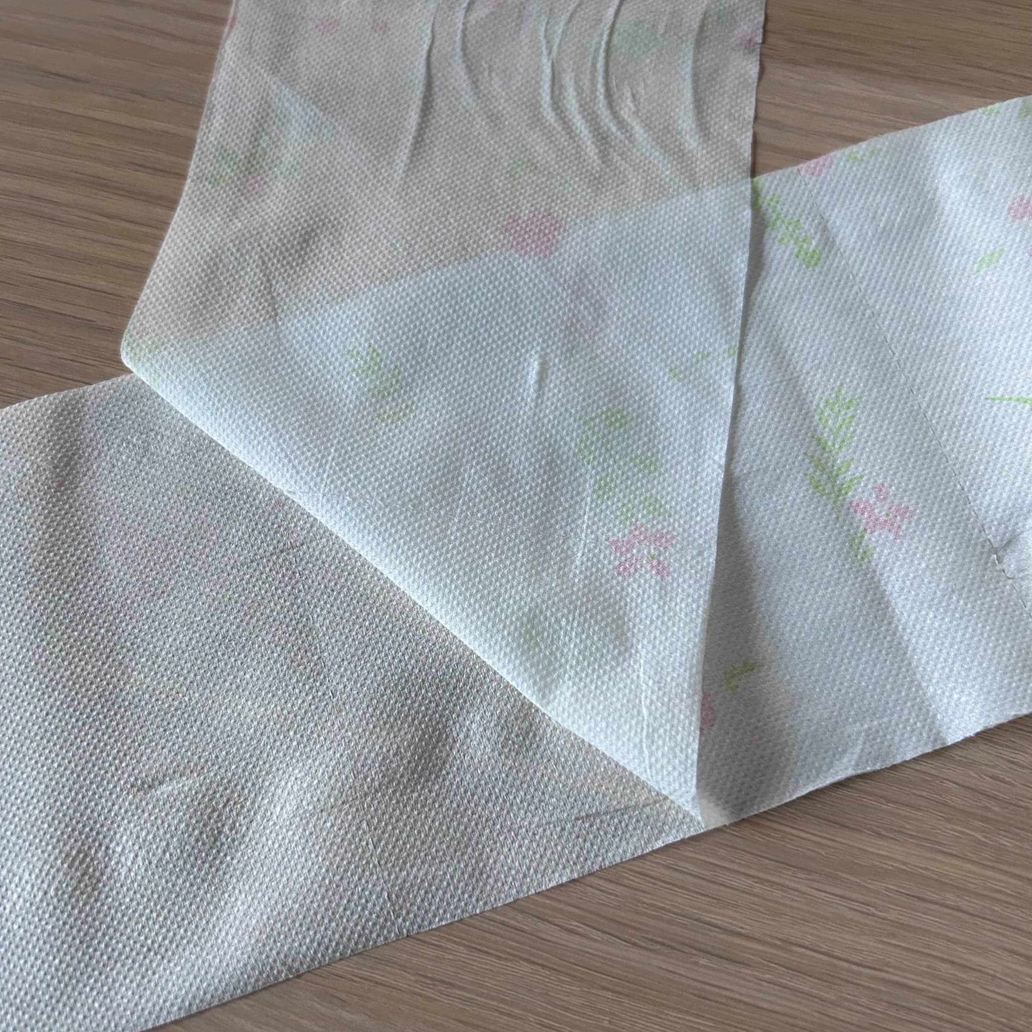 触り心地はふんわりしてやわらか、それでいて丈夫で破れにくいです。使い勝手と使い心地のどちらも大切にしたい人におすすめです。