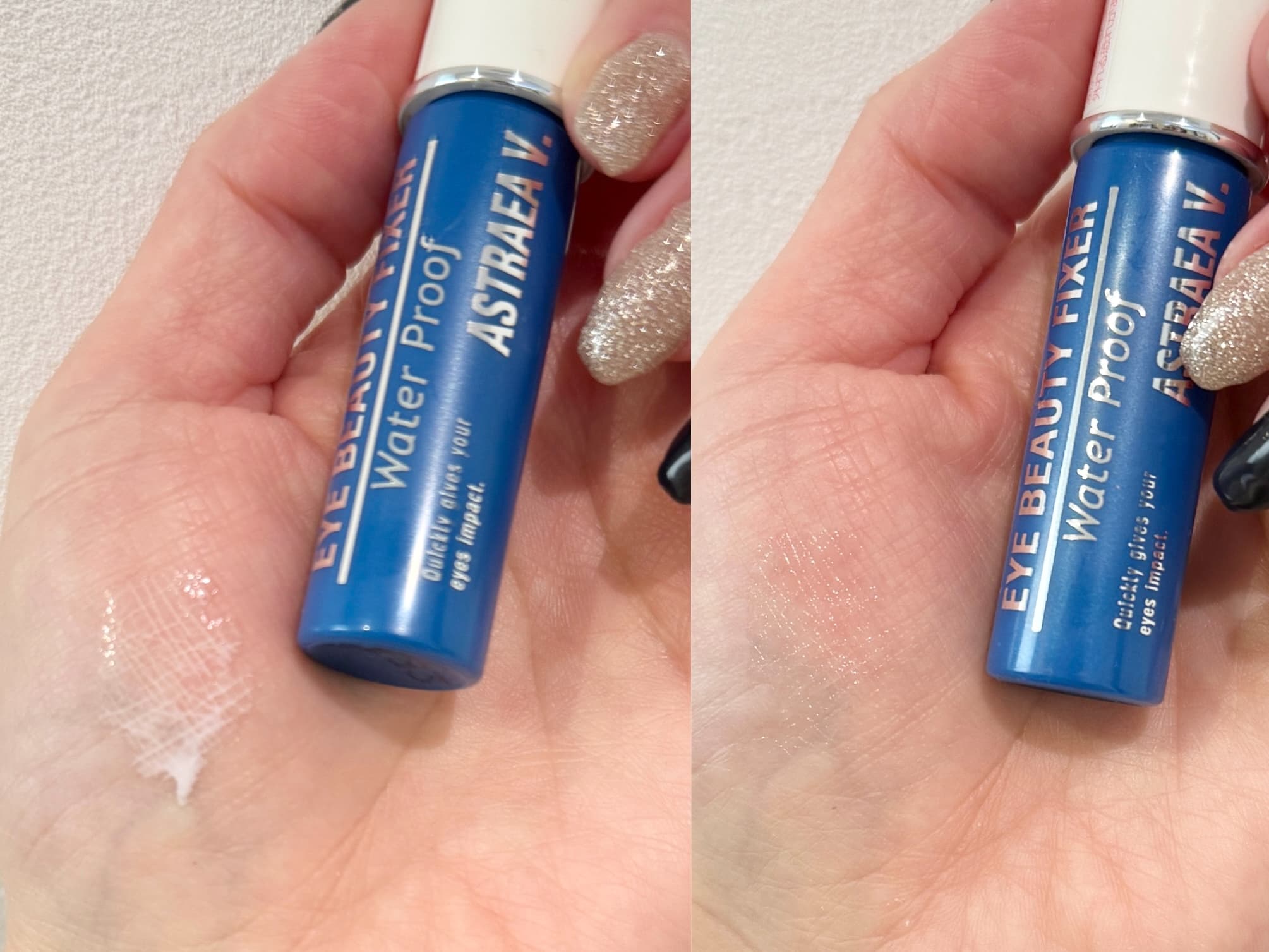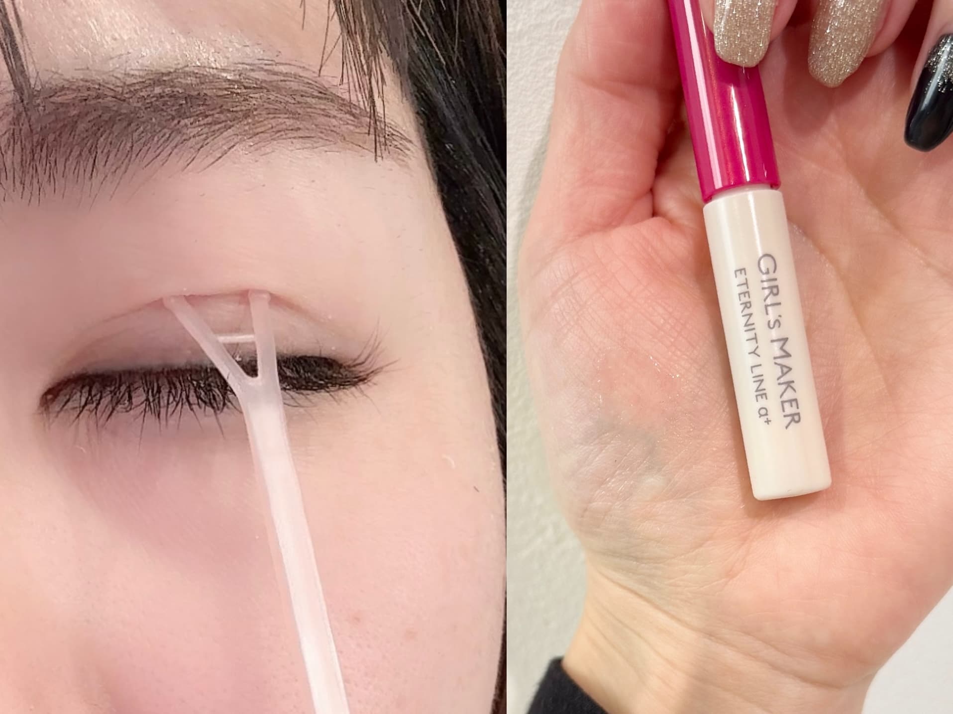 今回使用したアイテムのなかでものりが乾くのがとても早く、30秒ほど待てば二重を作れる状態になりました。乾いた後は透明で光りにくいので目立ちにくい点も魅力です。
