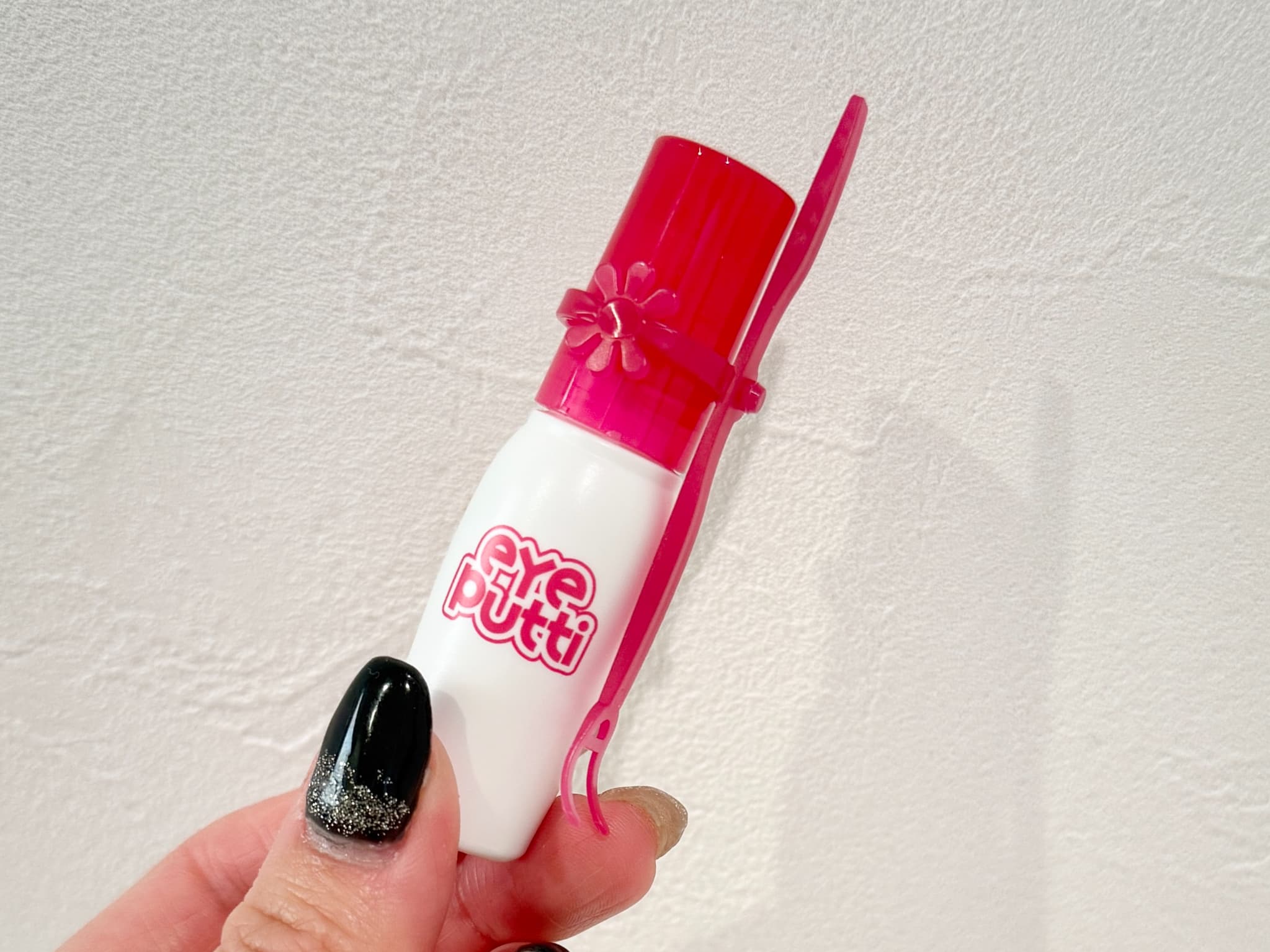白から透明に変わる液で、プッシャーも薄めなので、初心者さんにも使いやすい二重のりです。濡れたコットンでするんと落とせるのも便利です。