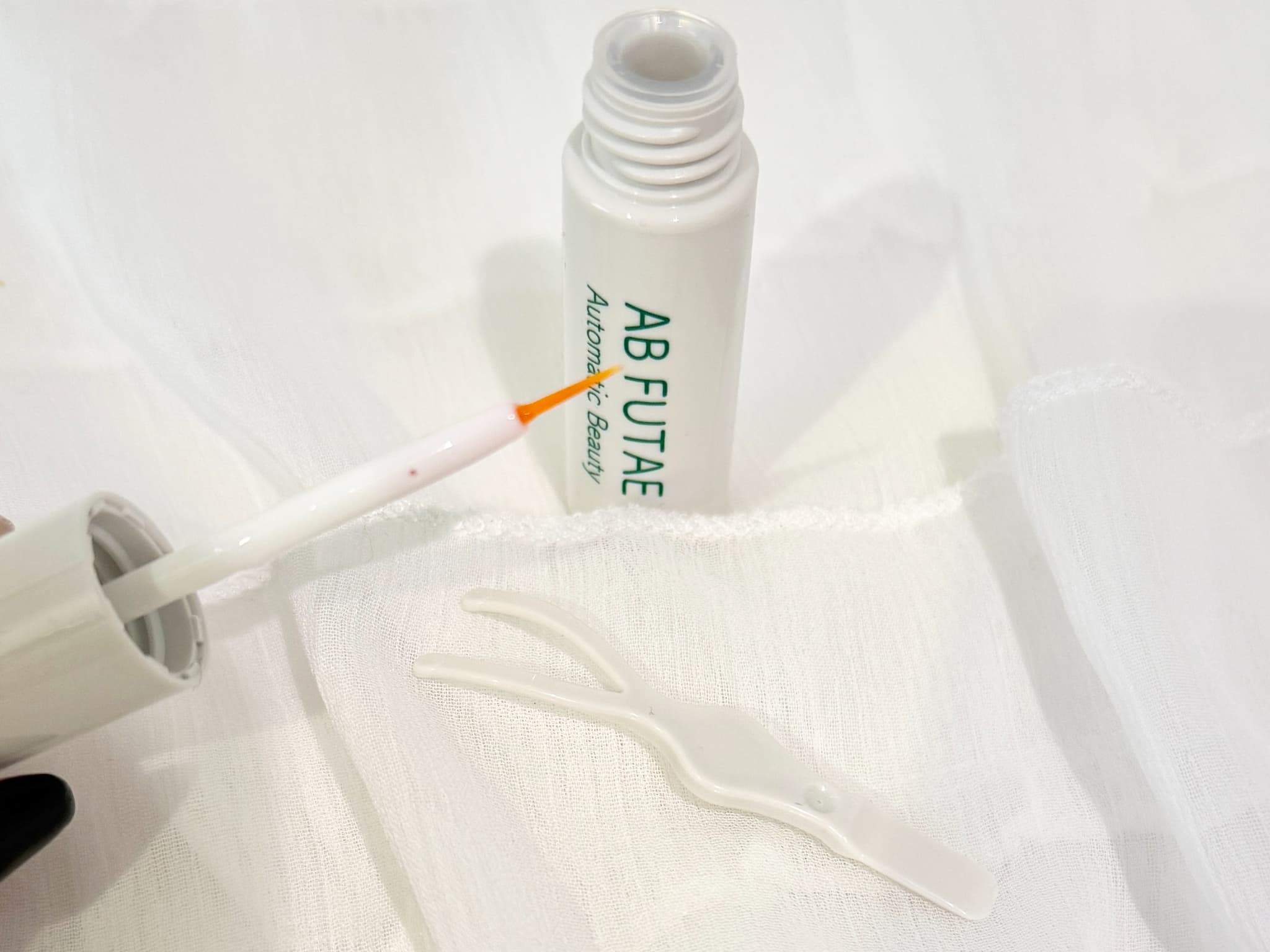 やや幅広で斜めカットになった筆で、理想の二重ラインの下まで短時間でのりを塗れました。非接着タイプはのりを塗る範囲が広めなので、さっと塗れるのはうれしいポイントです。