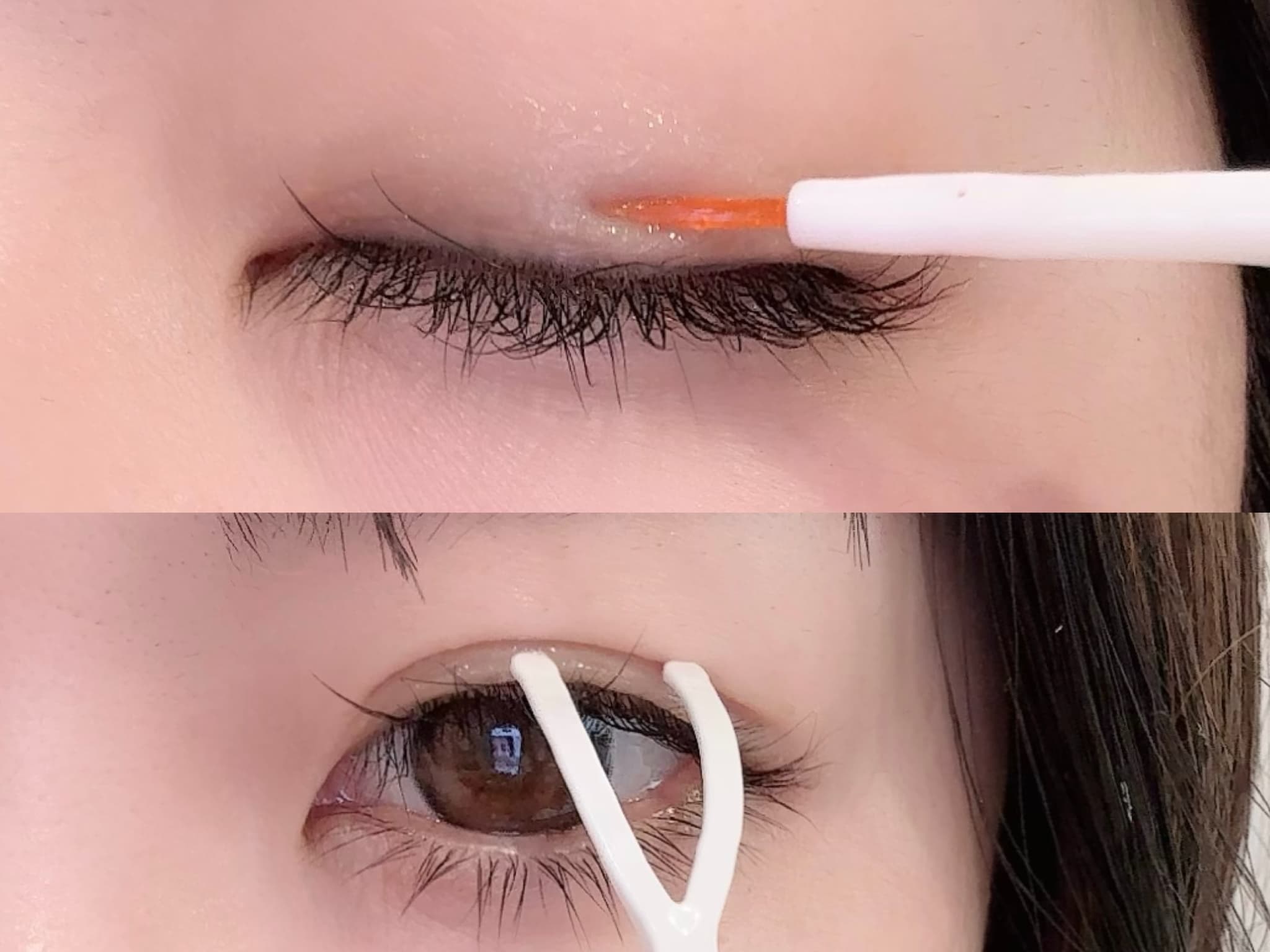 まぶたが厚く二重の線ができにくい人には「接着タイプの二重のり」がおすすめです。二重にしたいラインにのりを塗って、プッシャーで二重を作ります。