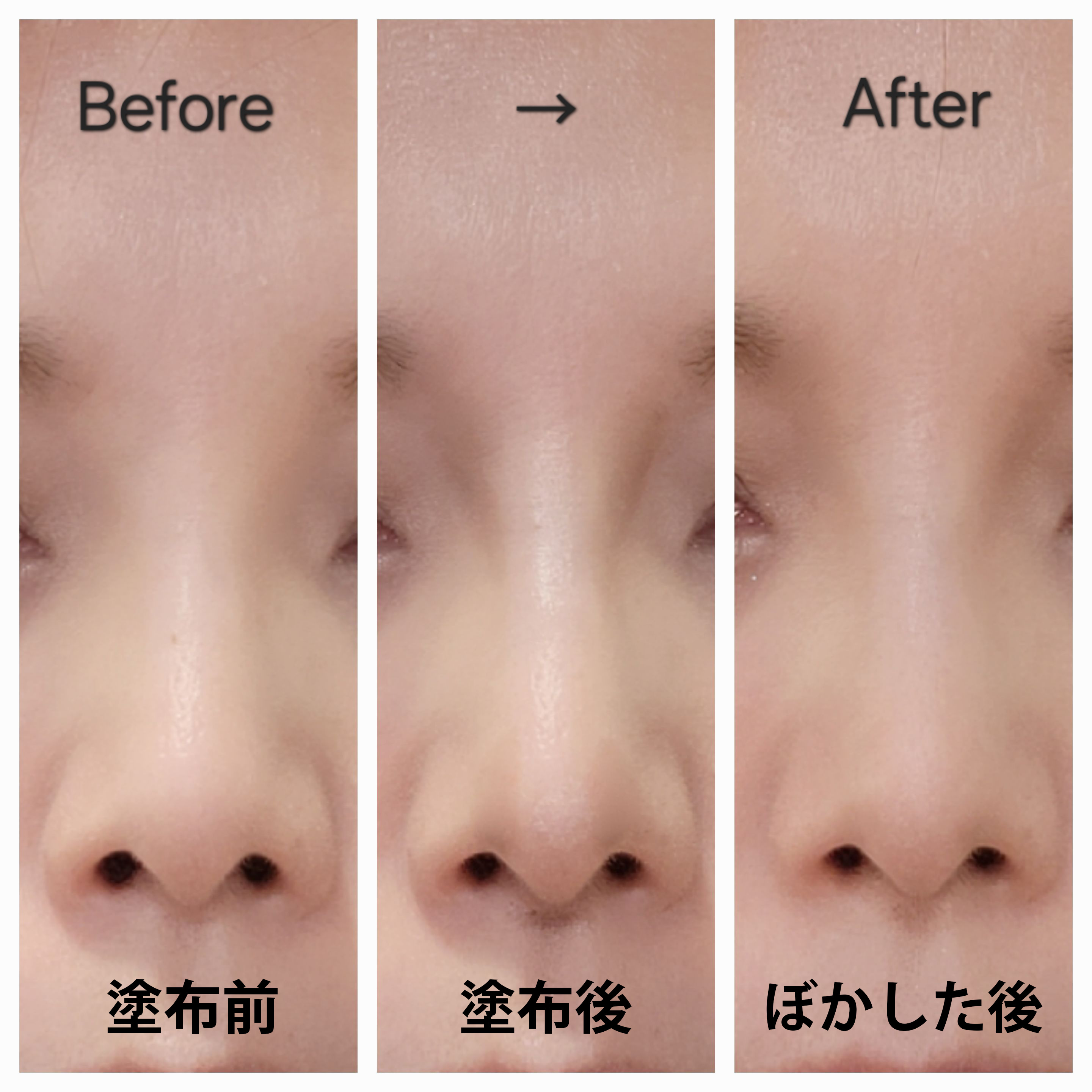 鼻頭の先・小鼻・人中といった細かいパーツにもピンポイントで塗りやすいほか、生え際といった広めの範囲にも自然な影を作れます。