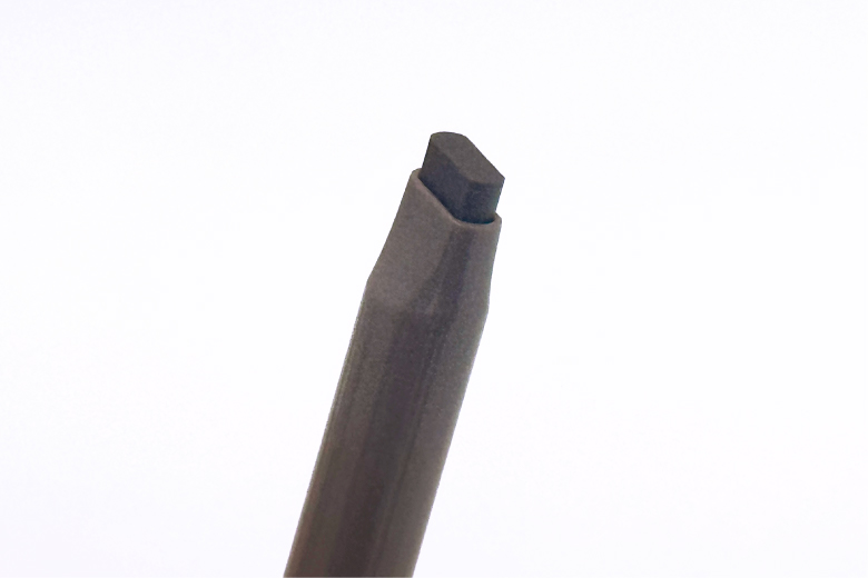 ペン先が斜めカットになっているので、角度を変えることで狭い部分と広い部分のどちらにも対応しやすく、自然な仕上がりに。