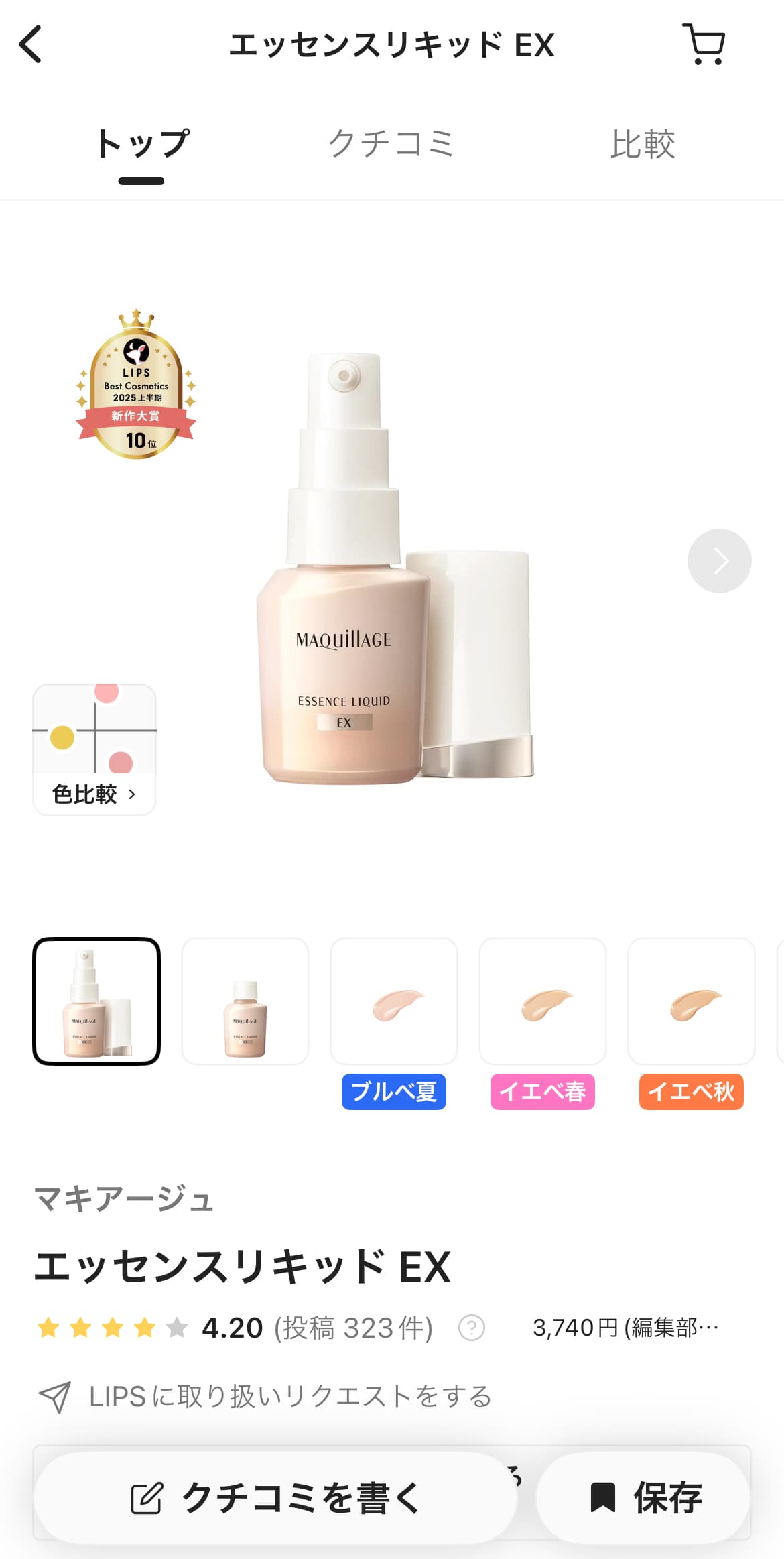 LIPSで商品を検索すると、商品の詳細や色展開はもちろん、ユーザーのクチコミやレビュー、商品の評価が一目でわかります。実際に使用した感想や化粧持ち、どんな肌質におすすめかといった情報を画像つきで細かく記載しているユーザーが多く、購入する際の参考になりますよ。