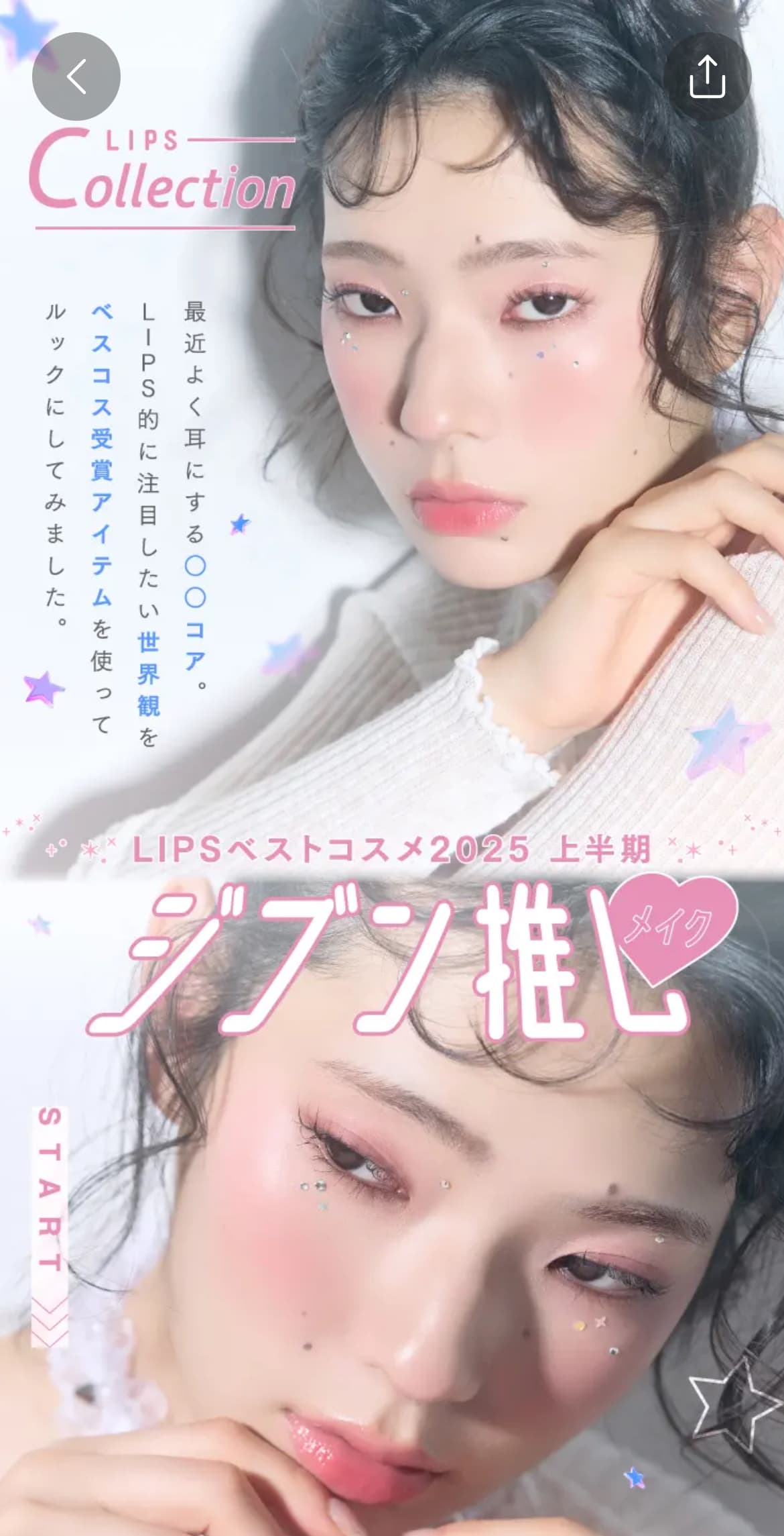 中でも見応えのあるコンテンツが、「LIPS Collection ジブン推しメイク」。SNSなどで目にする「⚪︎⚪︎メイク」といったメイクの世界観を、ベストコスメ受賞アイテムを使用して提案する特集ページです。