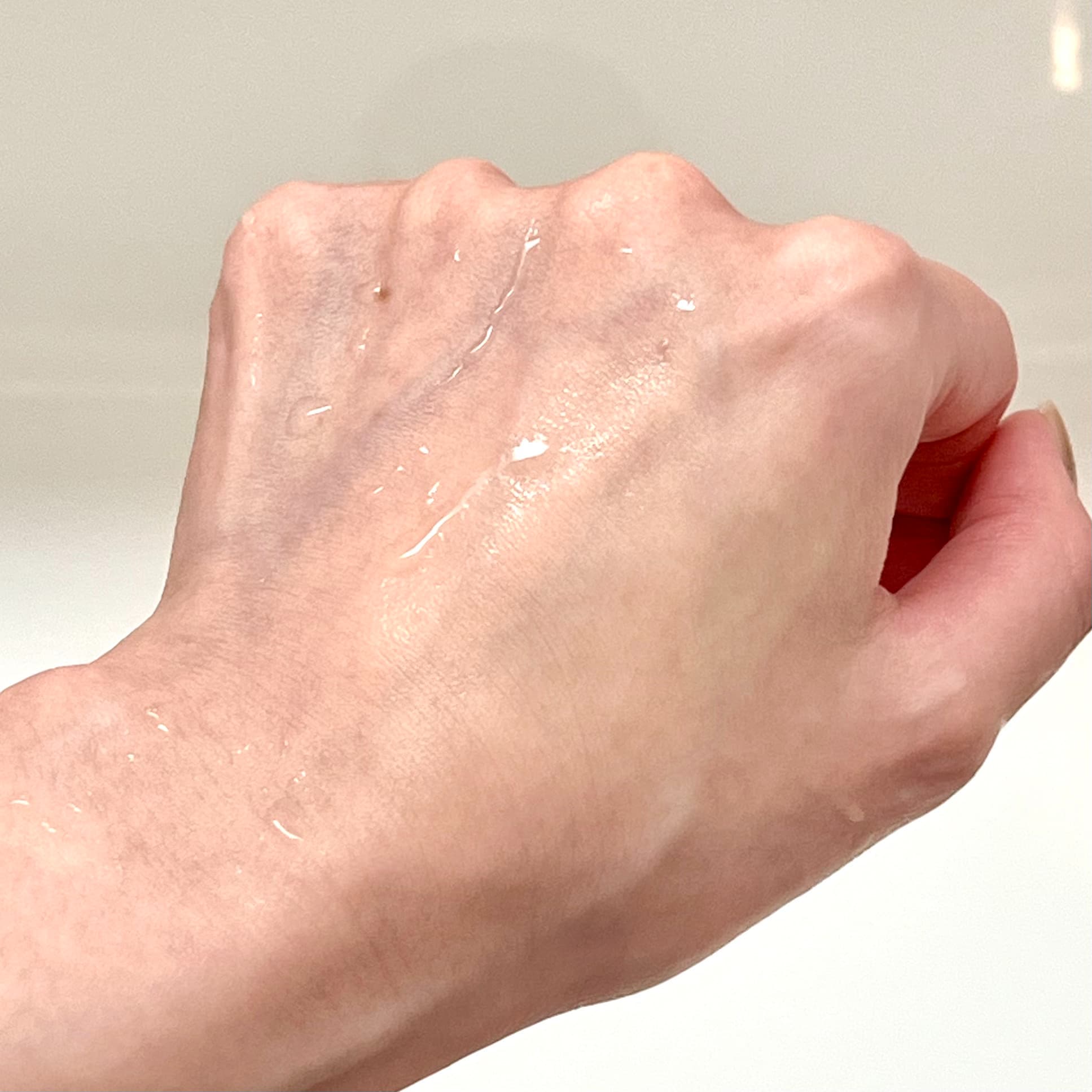 ジェルは粘度のあるテクスチャーで、たれることなく肌にピタッと密着します。カーブや凹凸のあるワキにも塗布しやすく、狙ったところにピンポイントで塗布できるところがよいですね。